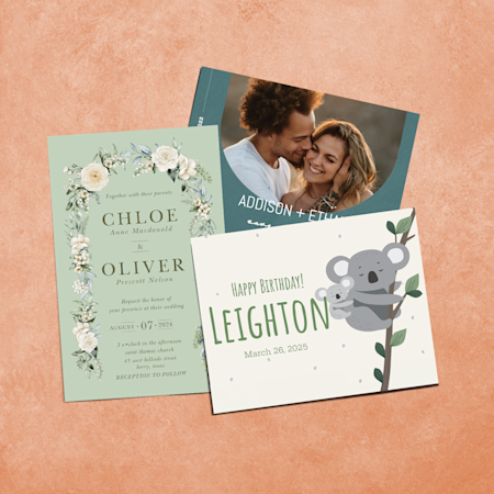 When choosing invitations, it’s important to think about your event’s theme. After all, custom invites are a great opportunity to give guests a sneak peak into the overall vibe. In our galleries, you can find your perfect invite by filtering by occasion, style, size and more. Once you find a template you love, customize it to your liking – let your personal style shine through in the colors, fonts and images. And be sure to include all the important details like the date, time, location and how to RSVP. Before ordering, you’ll have a chance to preview your creation and make any necessary changes. If you need help designing at any point, please reach out! We want you – and your guests – to love your custom invitations.