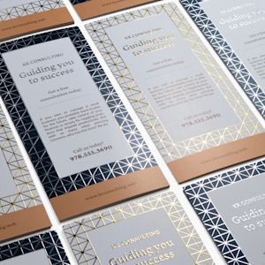 Whether you’re handing them out or putting them on display, embossed foil rack cards are a great way to get the attention of busy shoppers, pedestrians and more. The special printing helps you make a big impact in a small amount of time – at storefronts, events and public spaces. You’ve only got a brief moment to make an impression on people, and adding our metallic, textured foil to the front of your design gives you a standout look and feel.