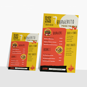 Looking for a menu that’s both sleek and practical? Our flat menus capture attention (and increase appetites) in one easy-to-scan sheet. With a clean and modern look, they're a staple item for any dining experience, fitting nicely on tables or countertop displays. From 3-course meals to takeout, your customers can see all you have to offer in one polished page.