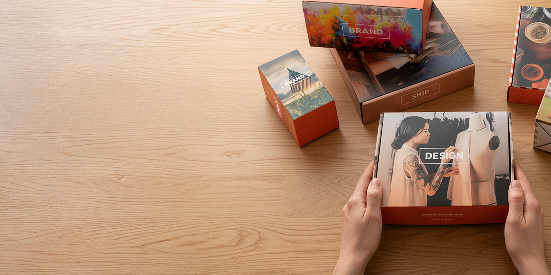 It’s easy. You can upload your own design or use our design studio to add your logo, graphics, patterns or branding. Or keep it simple with one of our plain mailer boxes. You can even preview your box from all angles in 3D before ordering.