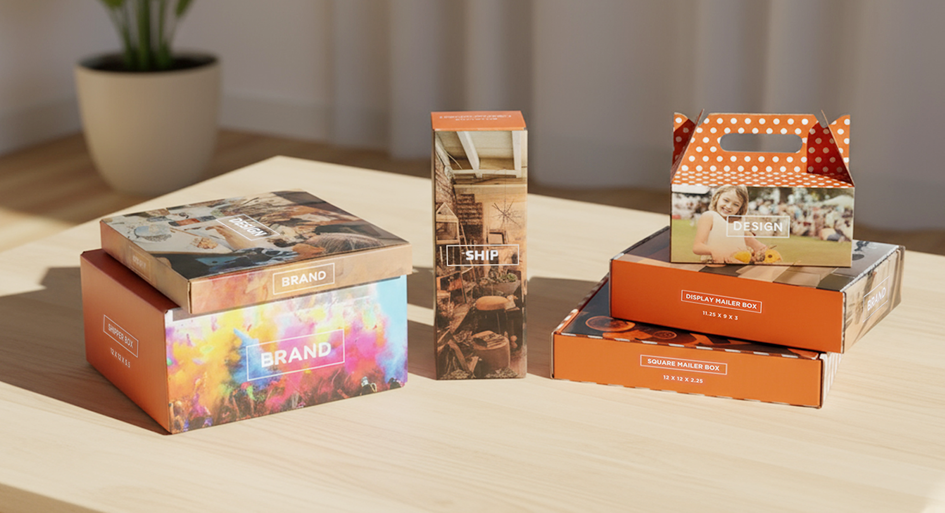 Product boxes are made from paperboard, which is intended for the product itself, but we recommend a sturdier corrugated box to withstand the rigors of shipping.
