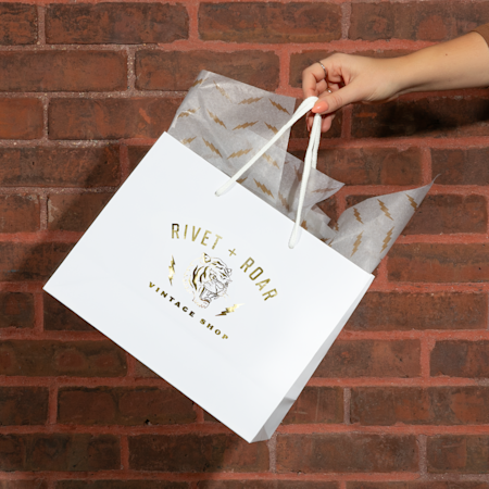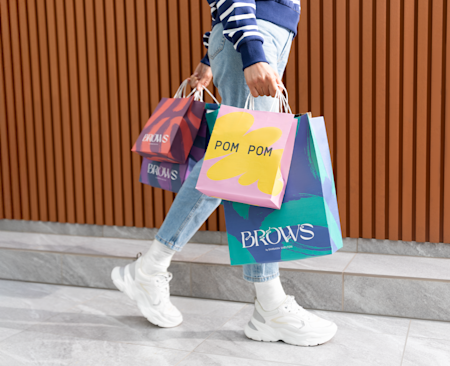 Take your packaging to the next level with custom shopping bags that put your branding front and center. Handing a customer a branded paper bag with your logo isn't just about carrying products – it's about making a lasting impression and boosting brand visibility. Think of it as a business card they'll carry around town. VistaPrint's printed bags are vibrant, eye-catching and designed to enhance the customer experience. Whether you're running a retail shop, managing an e-commerce business, offering restaurant takeout or heading to events, giveaways and trade shows, we've got you covered. From premium full-colour paper bags to luxury gift bags and everything in between – including reusable die-cut handle bags, tote bags and wine bags – they’re a cost-effective way to boost your marketing and give customers something they'll actually use.