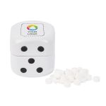 Make a playful impression with this dice-shaped tin of sugar-free mints. Eye-catching design for trade shows and sales calls, filled with delicious treats.
