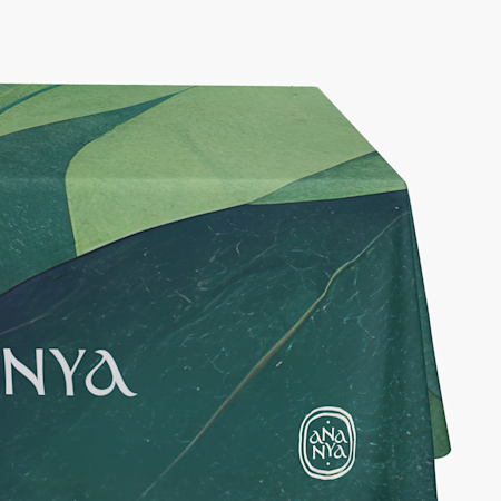 All of our products are printed in vibrant, full colour, but your printing options vary depending on which table covering you choose. Our custom tablecloths and table runners have all-over printing and limited printing options available.