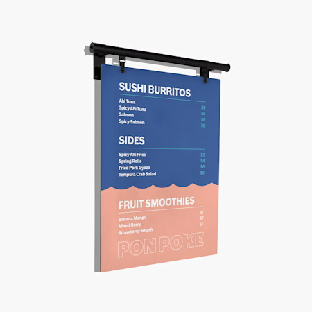 Rigid signs are characteristically flat and durable, but they can come in multiple shapes, sizes and materials. Go for a sleek and modern look with our acrylic, metal and hard plastic signs, or create a can’t-miss display with PVC-free boards and floor standups. We also offer wooden signs, silicone edge graphics and many more styles to help your message stand out with your style. No matter which direction you take, you’ll find a range of sizes, finishes and hanging options to suit your small business needs.