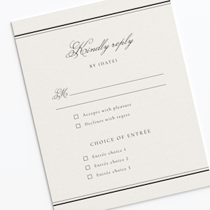 Don’t worry, it’s simple. Pick a paper type and then head to the gallery to browse all our RSVP templates. After selecting, you’ll be taken to the design studio where you can customize text and add other details (like a song request, for example). You’ll also be able to select your ink colour.